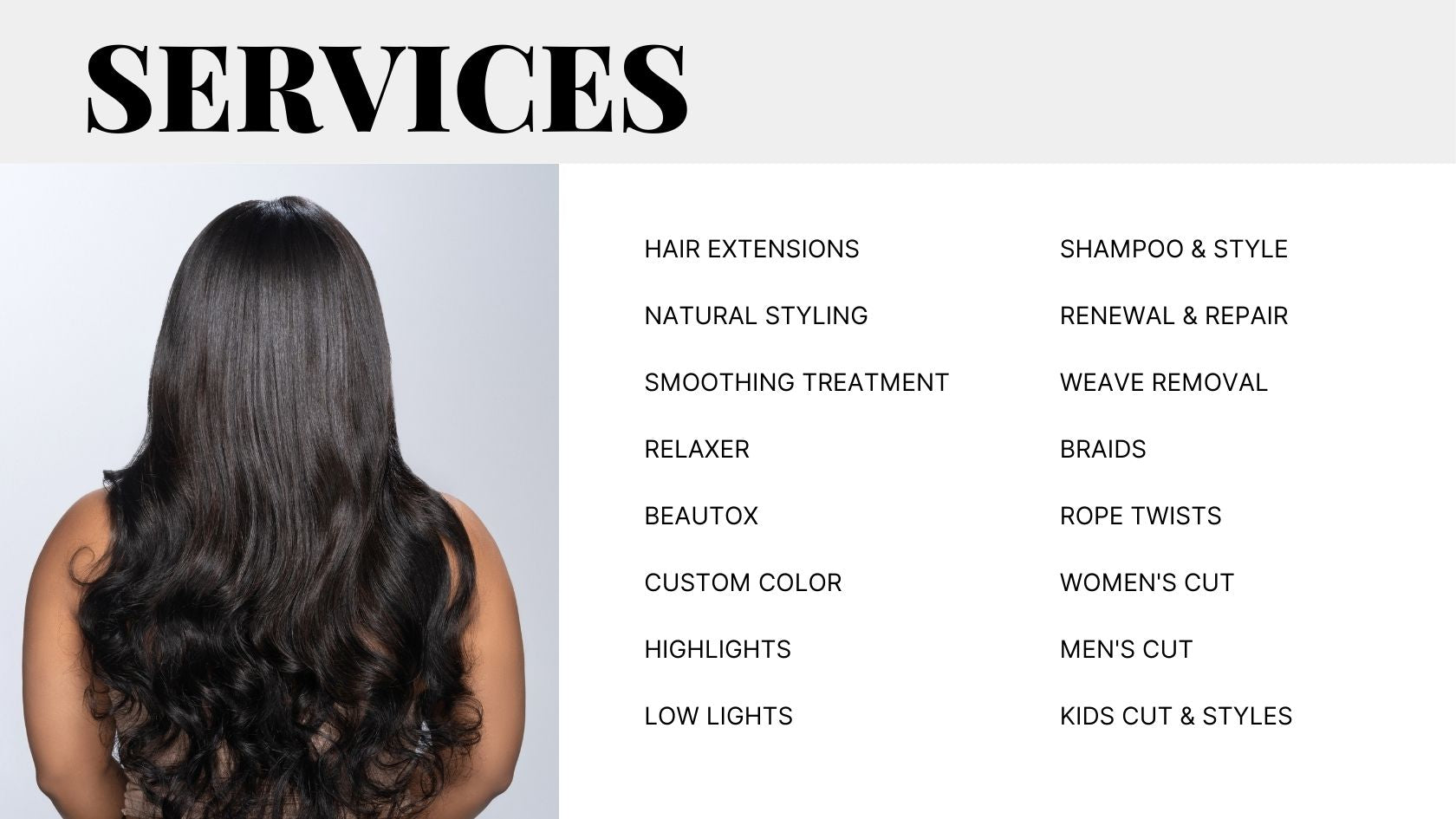 We understand that every individual is unique, and we celebrate the beauty of diversity. Our salon provides services to all hair types and ethnicities. We offers a wide range of styles tailored to both Men and Women.